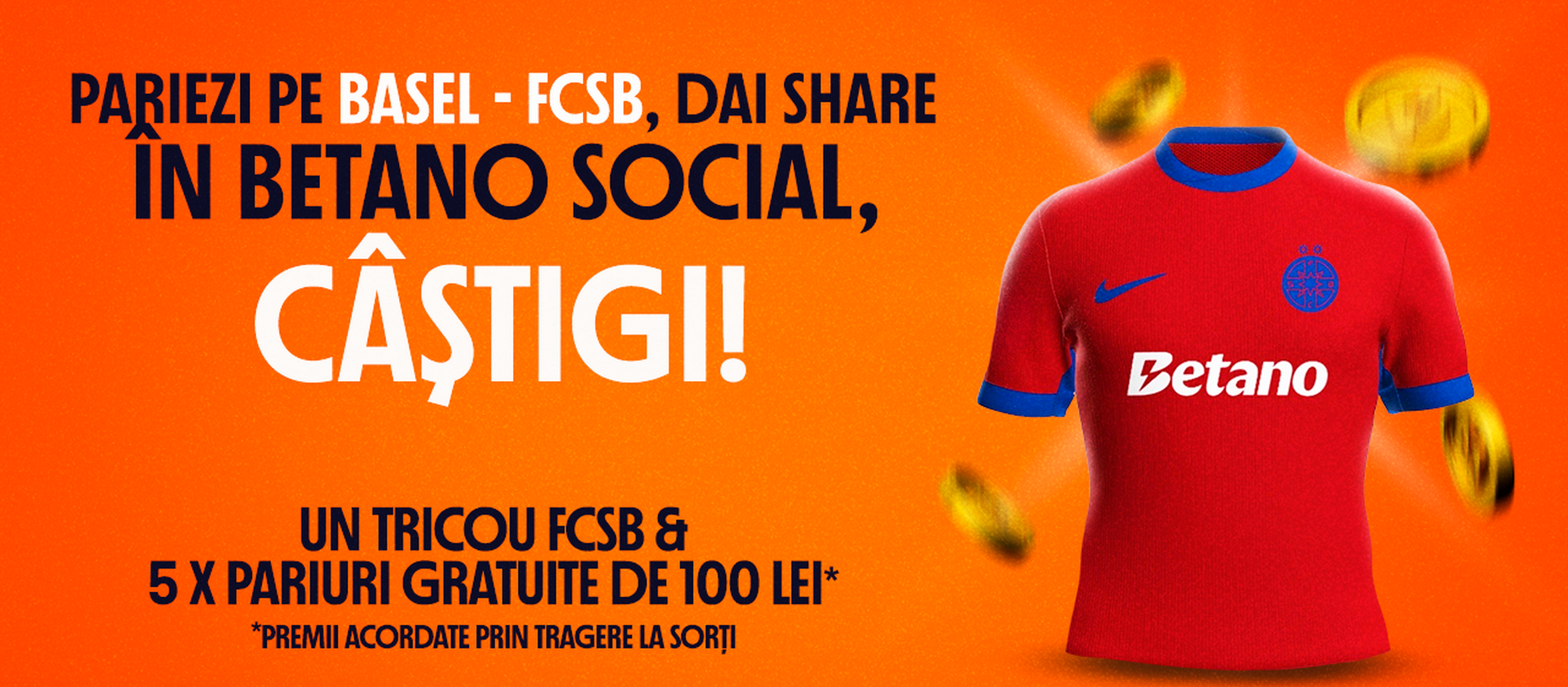 Giveaway Basel - FCSB: distribuie pariul tău în Betano Social și fii RECOMPENSAT Pe Bune