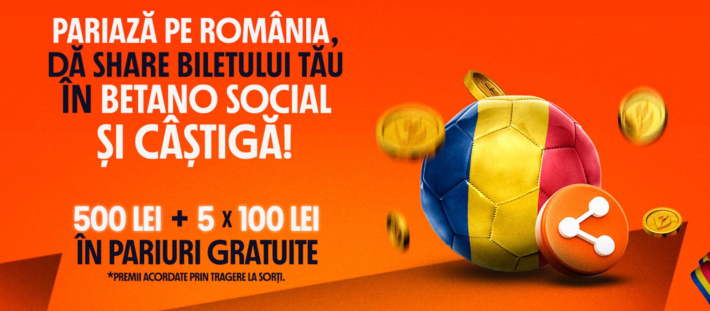 👉 Intră acum în Betano Social, pune biletul pe România și dă share! Recompensa ta te așteaptă!