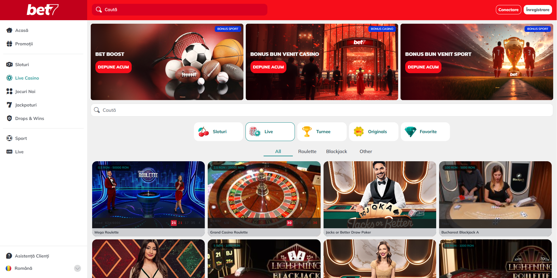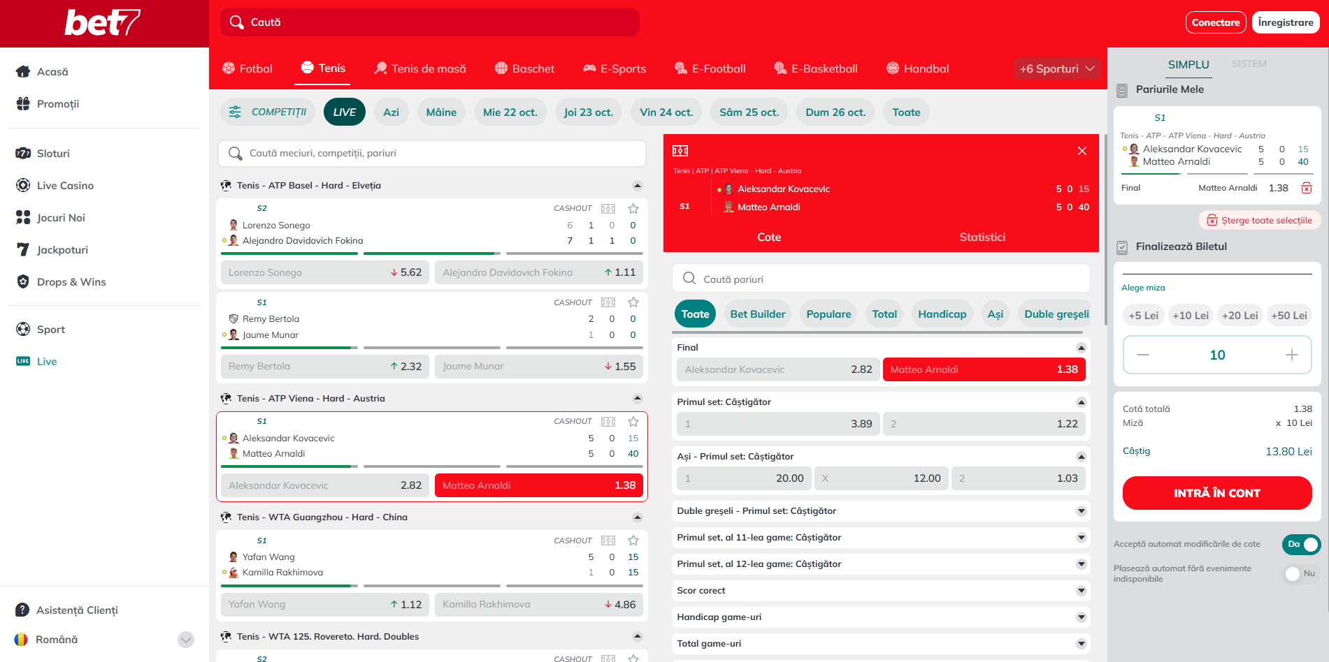 La o astfel de ofertă bogată pre-meci, ar fi fost dezamăgitor ca oferta live să fie una săracă. Din fericire, Bet7 nu dezamăgește nici la acest capitol.