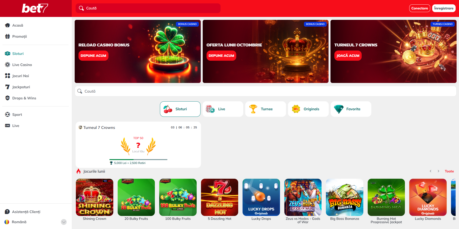 Platforma Bet7 permite ușor accesul la fiecare dintre secțiunile importante ale site-ului. Interfața este una modernă, culorile vii sugerând parcă deschiderea către nou.