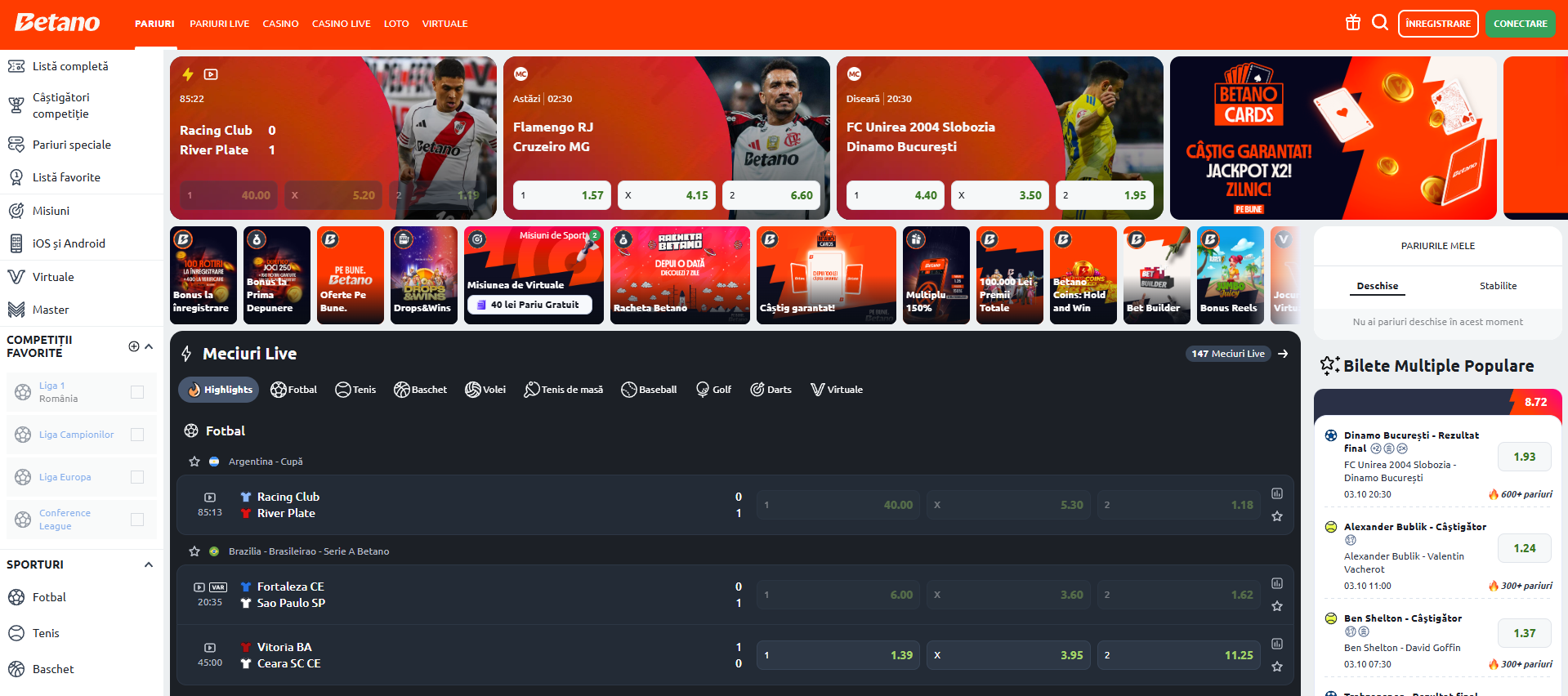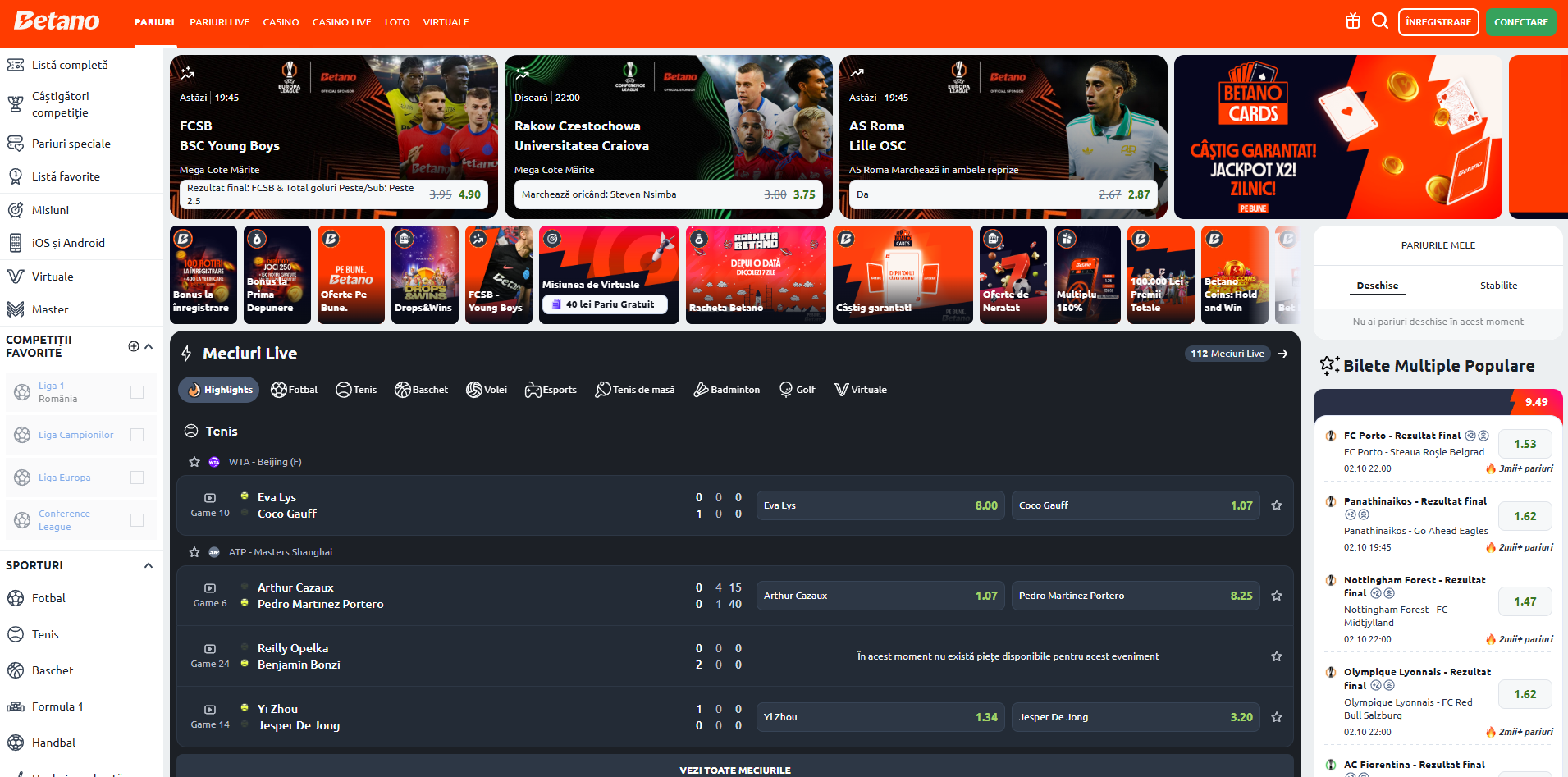 Betano este unul dintre cei mai buni operatori de pariuri din Romania si in ceea ce priveste pariurile Live.