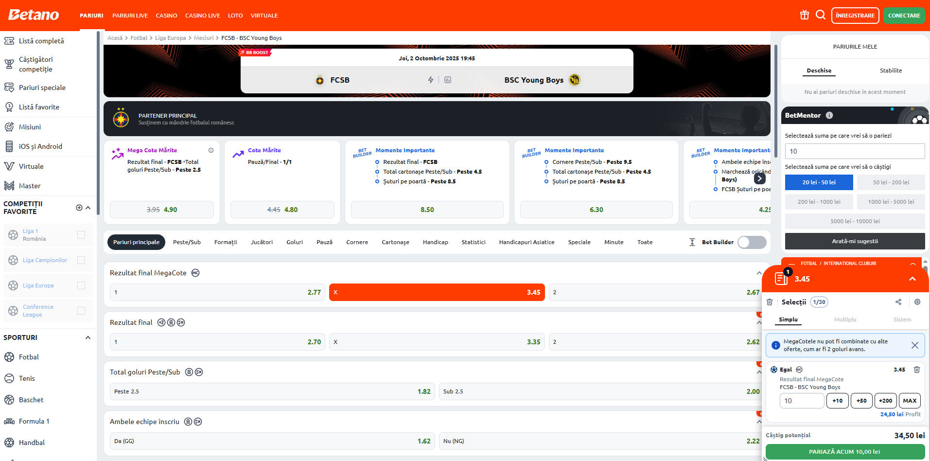 www.betano.ro este in top si din punct de vedere al ofertei de pariuri pre-meci.