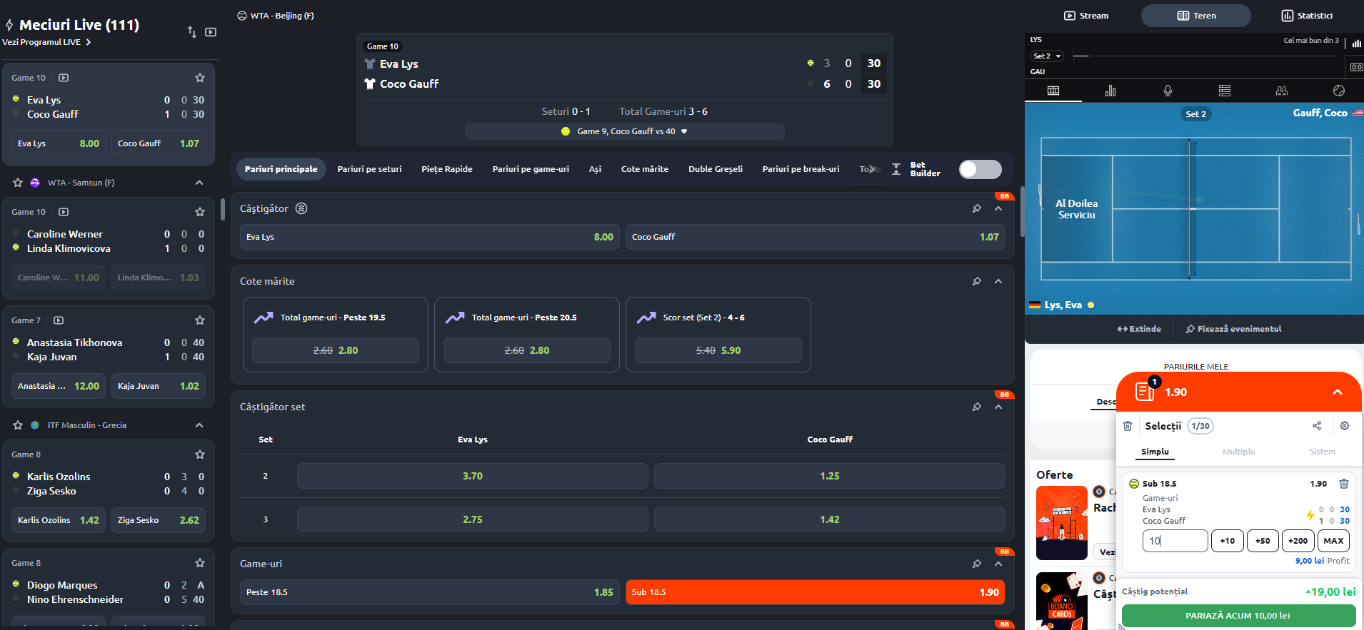 Functionalitati: Cash Out | Streaming live | Handicap asiatic | Internationale