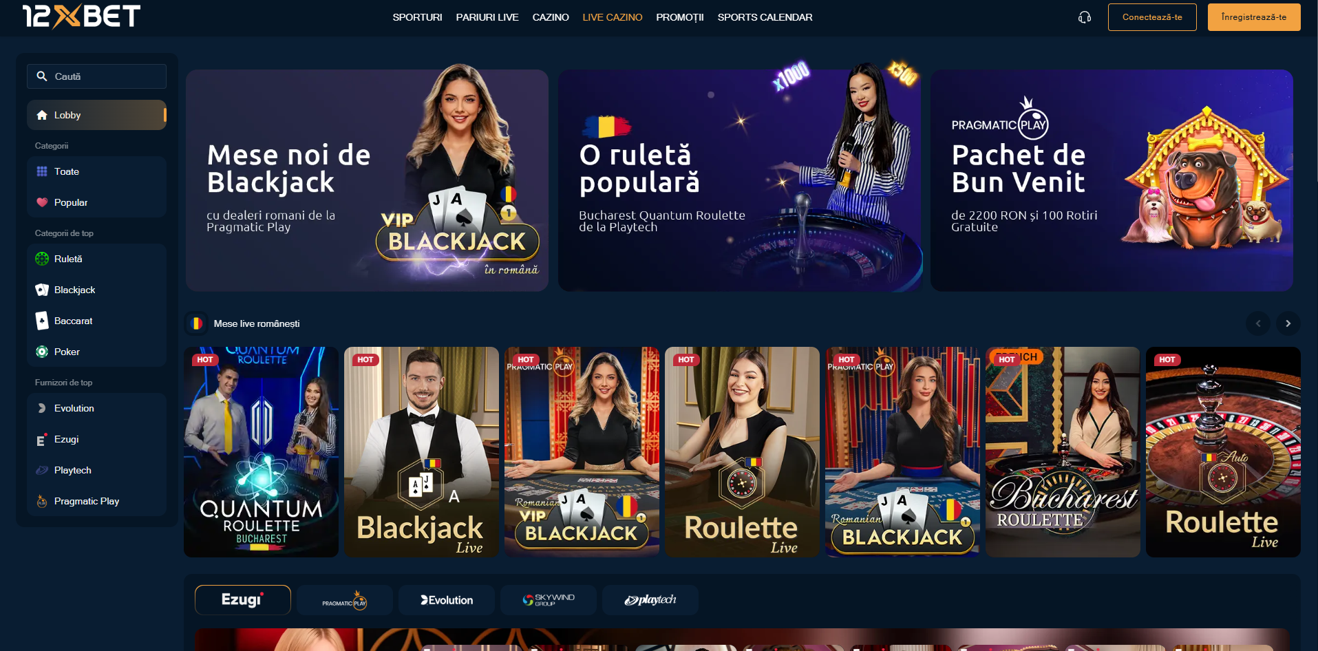 Secțiunea de live casino cuprinde 139 de mese in acest moment, insa pe noi ne-a impresionat de fapt numărul de furnizori de top: șase. Chiar și faimosul NetEnt vine cu doua jocuri, unul de ruleta și altul de baccarat.