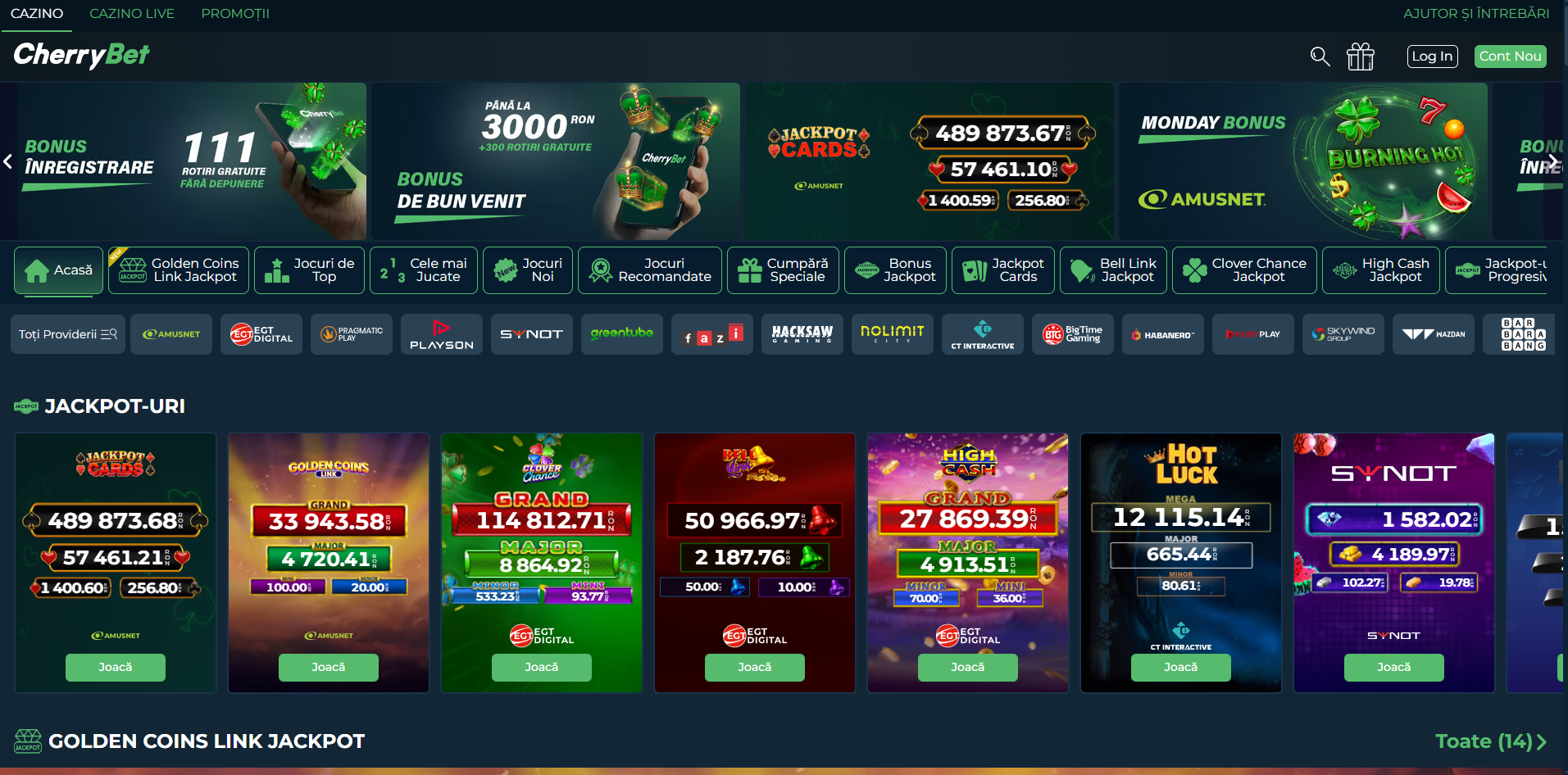 Gama variată de jocuri de la CherryBet este formată din sute de păcănele online ale celor mai cunoscuți și apreciați furnizori, dar și de jocuri de masă cu dealer live.