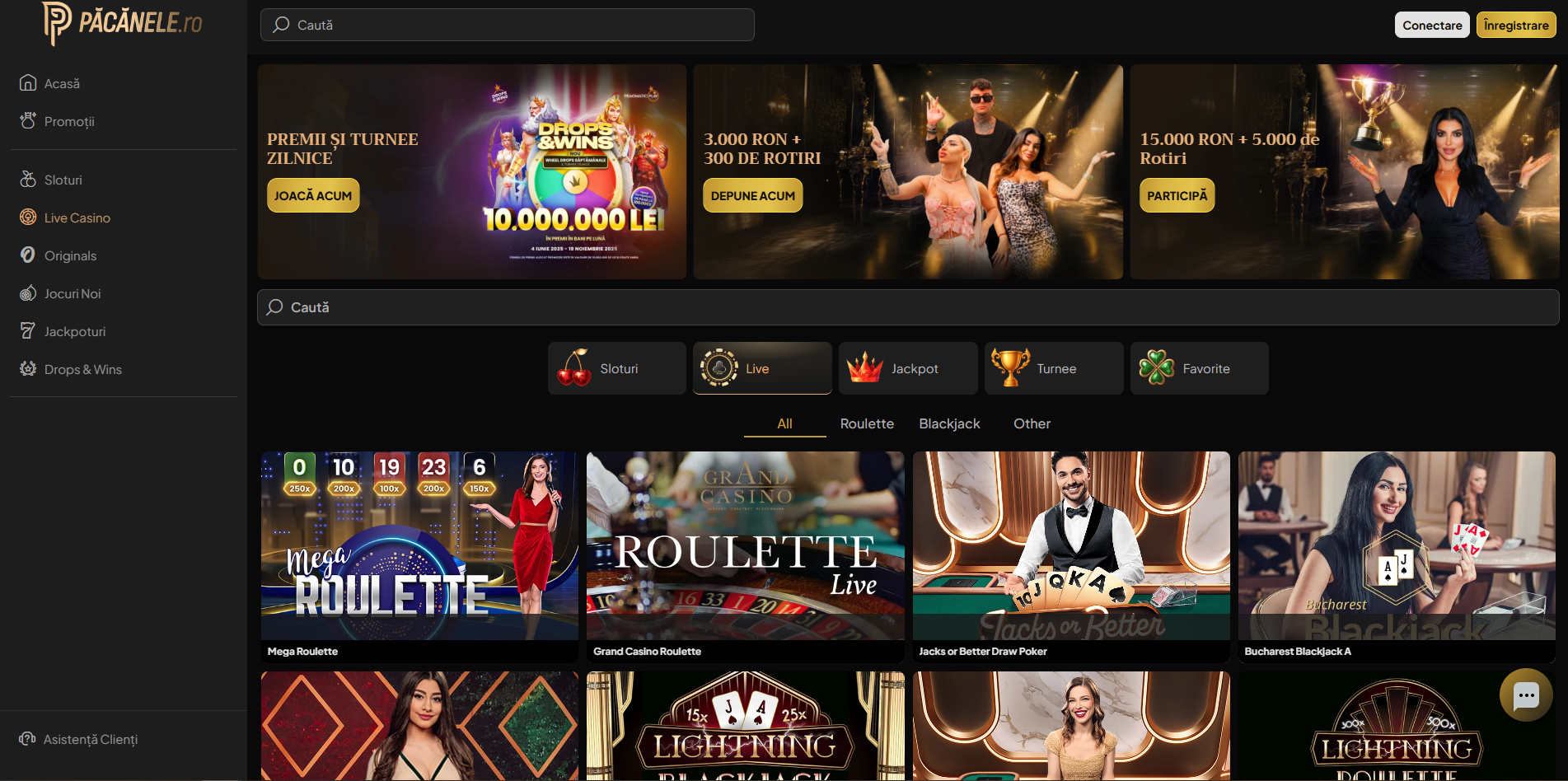 Jocurile live de pe Păcănele Casino sunt împărțite în mai multe categorii: