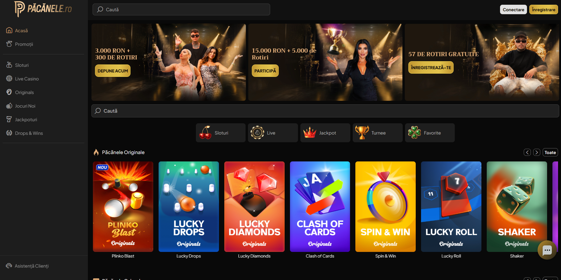 - Păcănele originale – jocuri exclusive create doar pentru această platformă.