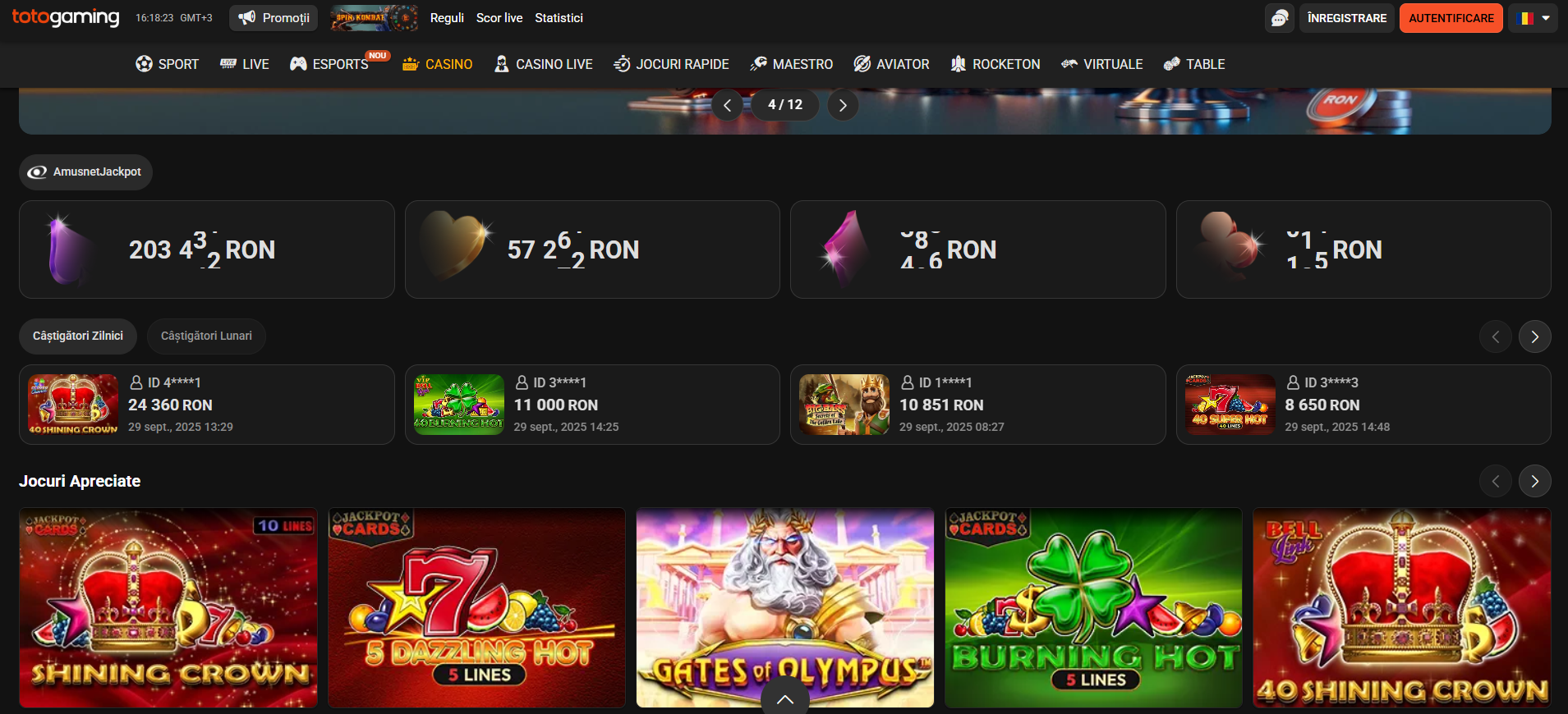 Printre numeroasele jocuri de păcănele existente în gama variată prezentă la TotoGaming Casino, pentru câștiguri importante avem la dispoziție jocurile cu jackpot din gama Amusnet Interactive sau cele care rulează cu motorul Megaways.