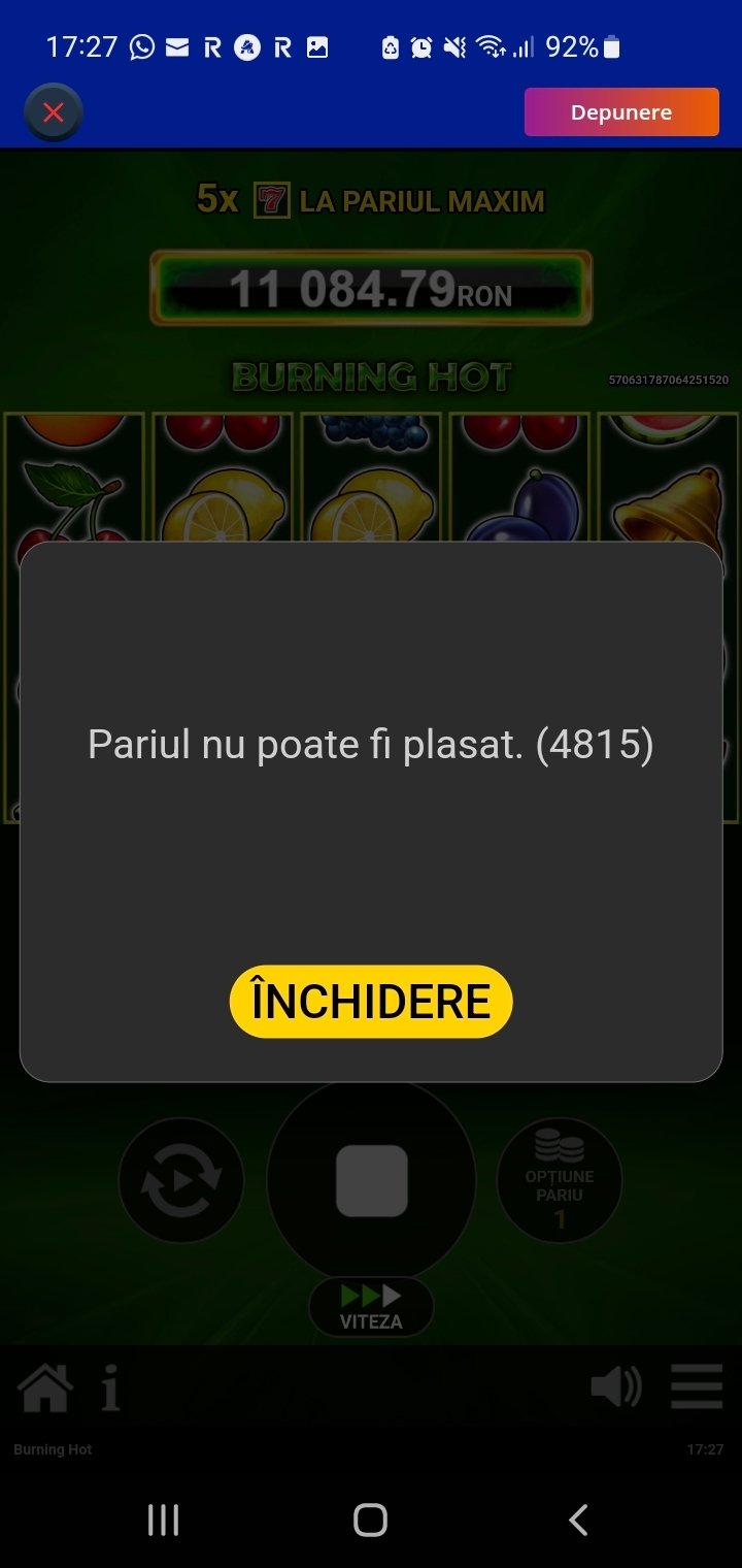 Reclamatie №14319343: Pariul nu poate fi plasat. (4815) / Sesiune intrerupta