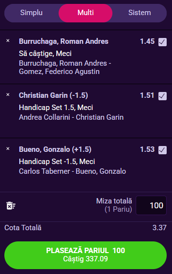 Tipster-ul Legalbet vă recomandă un combo la o cotă totală de 3.37 format din trei evenimente din tenis; multă baftă şi pariaţi responsabil!