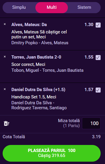 Tipster-ul Legalbet vă recomandă un combo la o cotă totală de 3.19 format din trei evenimente din tenis; multă baftă şi pariaţi responsabil!