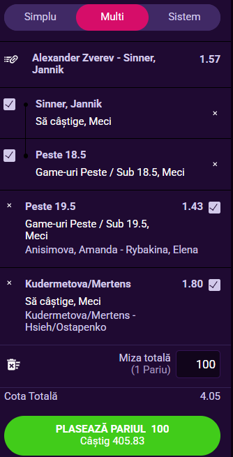 Tipster-ul Legalbet vă recomandă un combo la o cotă totală de 4.05 format din trei evenimente din tenis; multă baftă şi pariaţi responsabil!