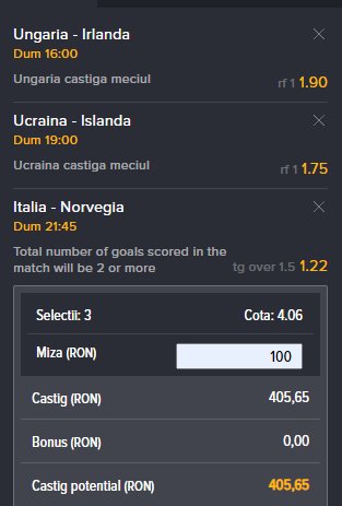 Am consultat oferta celor mai bune case de pariuri licentiate in Romania si am ales sa plasam biletul la Mozzart.