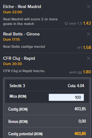 Expertul Legalbet, va recomanda un bilet de cotă 4, în care se bazează pe confruntări din LaLiga și Superliga României.