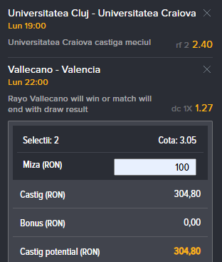 Ponturi Universitatea Cluj vs Universitatea Craiova