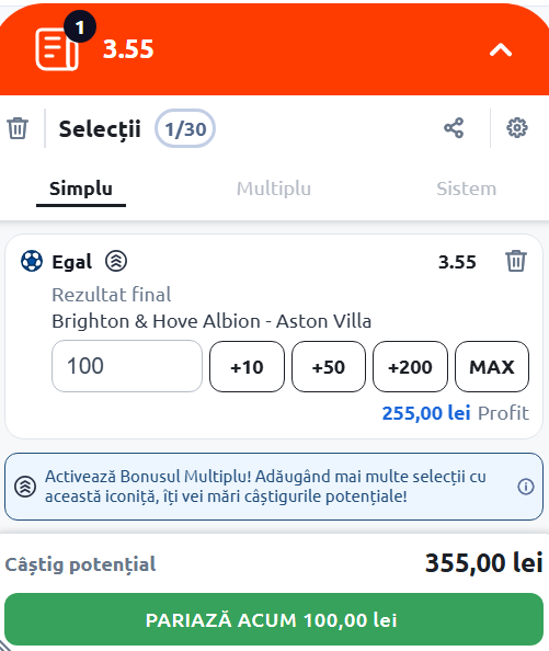 Expertul Legalbet vă recomandă Biletul zilei de miercuri, 3 decembrie 2025, care vine cu meciul Brighton & Hove Albion - Aston Villa.