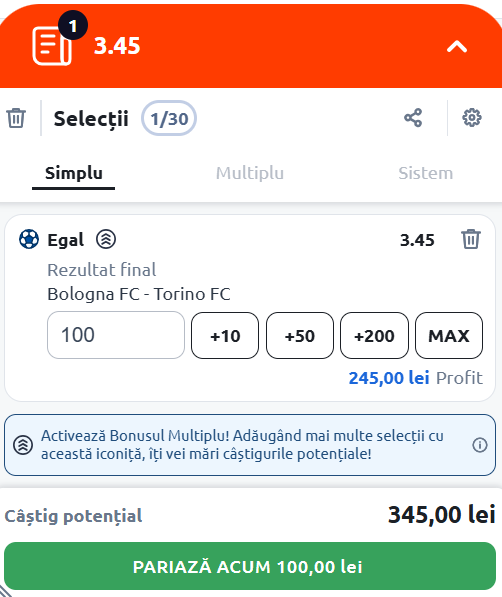 Expertul Legalbet vă recomandă Biletul zilei de miercuri, 29 octombrie 2025, care vine cu meciul Bologna - Torino.