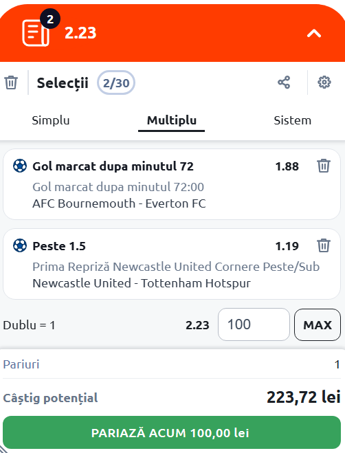 Expertul Legalbet vă recomandă Cota 2 de marți, 2 decembrie 2025, care vine cu meciurile AFC Bournemouth - Everton FC şi Newcastle United - Tottenham Hotspur.