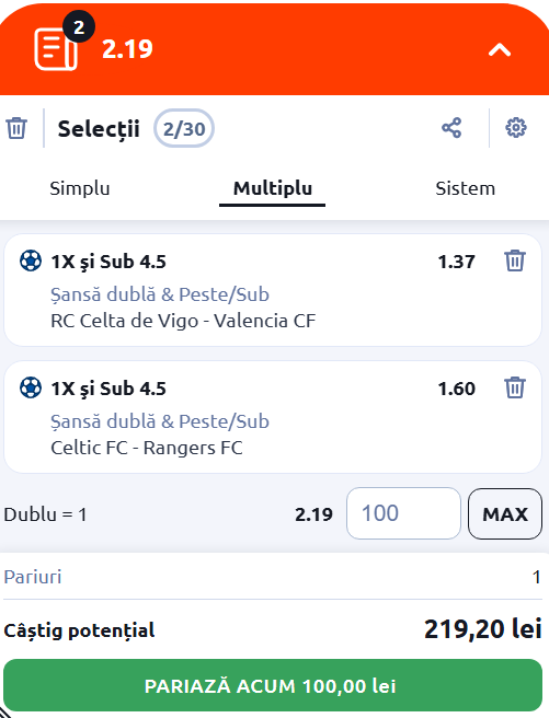 Expertul Legalbet vă recomandă Cota 2 de sâmbătă, 3 ianuarie 2026, care vine cu meciurile RC Celta de Vigo - Valencia CF şi Celtic Glasgow - Glasgow Rangers.
