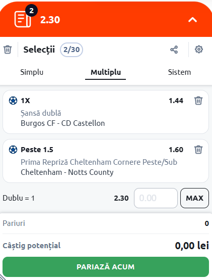 Expertul Legalbet, vă recomandă Cota 2 de luni, 10 noiembrie 2025, care vine cu meciurile Burgos CF - CD Castellón şi Cheltenham Town - Notts County.