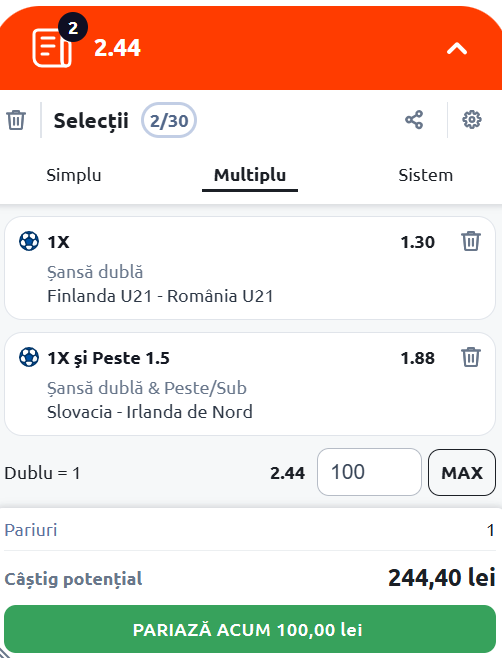 Expertul Legalbet, vă recomandă Cota 2 de vineri, 14 noiembrie 2025, care vine cu meciurile Finlanda U21 - România U21 şi Slovacia - Irlanda de Nord.
