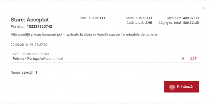 La meciul dintre Polonia si Portugalia din sferturile EURO, va invit sa mizati pe calificarea Portugaliei, la o cota de 1,57.
